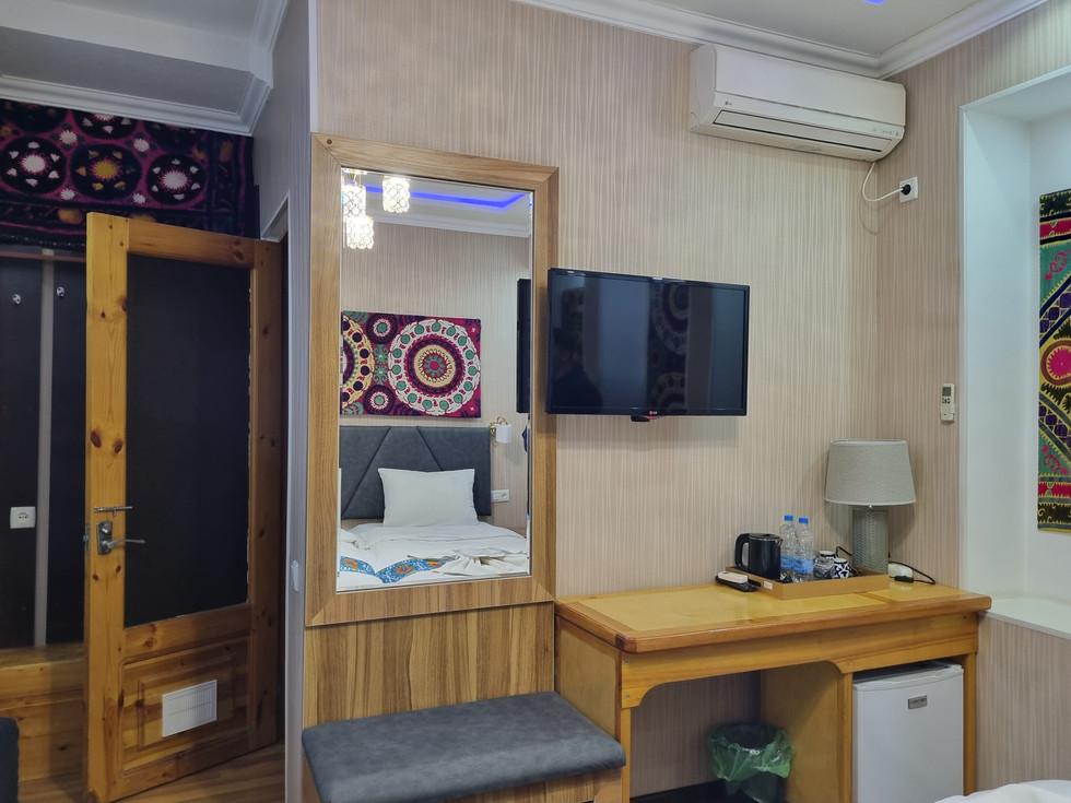 หลังจากเช็คอินห้องที่ Hotel Uzbekistan เป็นโรงแรมในแบบโซเวียตที่เปิดให้บริการมานานแล้ว ภายในห้องจะเก่าหน่อย และเฟอร์นิเจอร์บางอันก็จะชำรุด แต่สำหรับ Location ถือว่าอยู่ใจกลางเมืองเดินทางง่ายและอยู่ใกล้กับแหล่งท่องเที่ยวอื่นๆด้วย เมื่อเราเก็บกระเป๋าแล้ว เราก็ได้ออกไปเดินเล่นสำรวจพื้นที่รอบๆและหาร้านอาหารเย็น เพื่อลองชิมอาหารของประเทศอุซเบกิสถาน