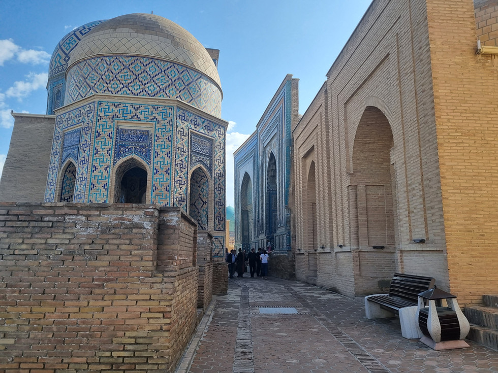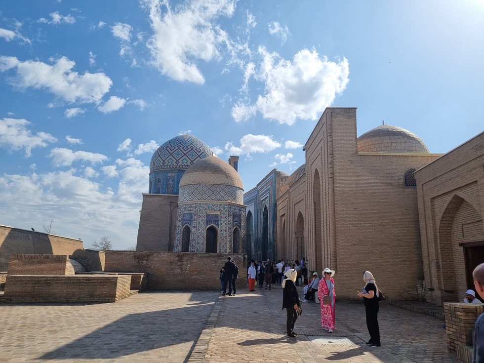 จากนั้นเราก็เรียกรถ Yandex ไปที่ Shah-i-zinda ซึ่งเป็นสุสานของชาวมุสลิม เราใช้เวลาที่นี่ประมาณ 2 ชั่วโมงเพื่อสำรวจพื้นที่และเรียนรู้เกี่ยวกับประวัติศาสตร์ของสถานที่และผู้คนที่ถูกฝังอยู่ที่นั่นในอดีต